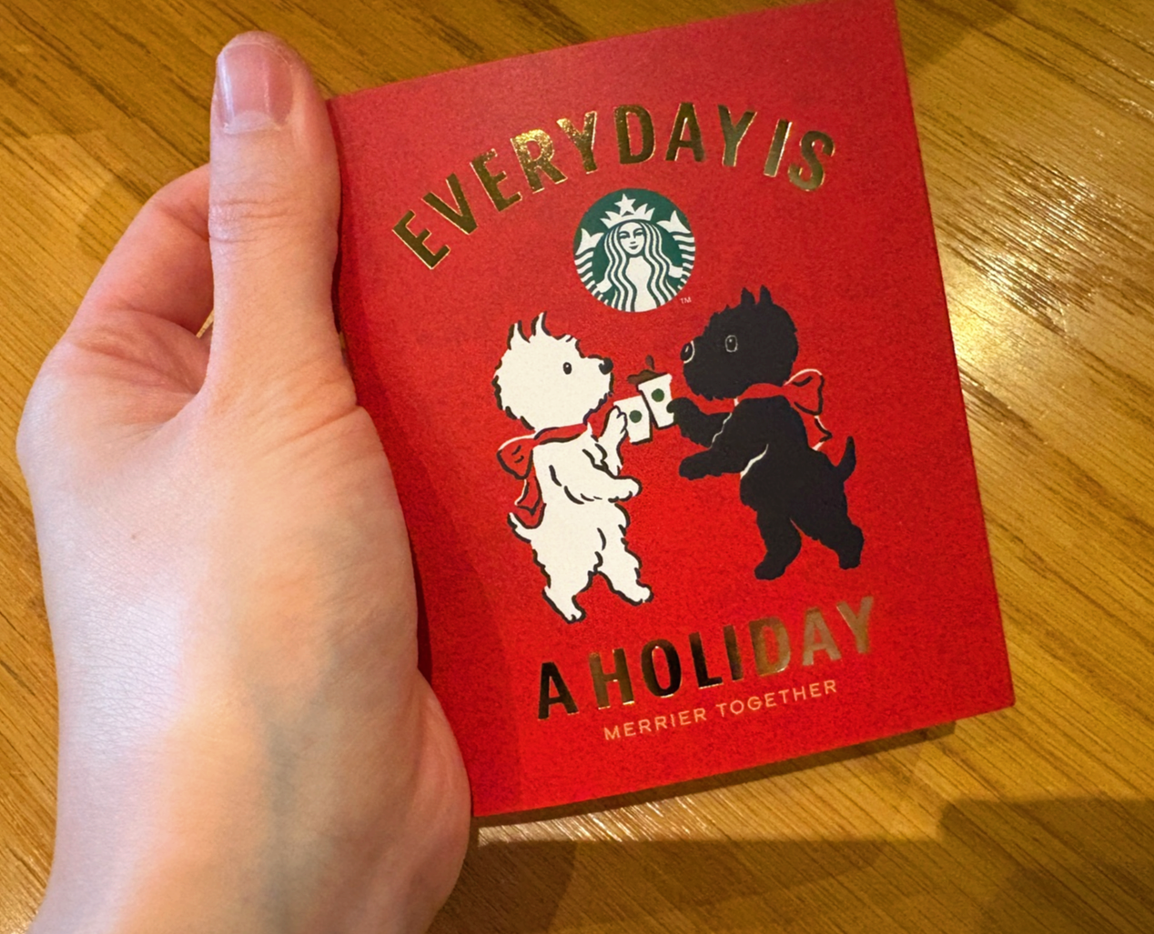 스타벅스 홀리데이 크리스마스 카드속에 있는