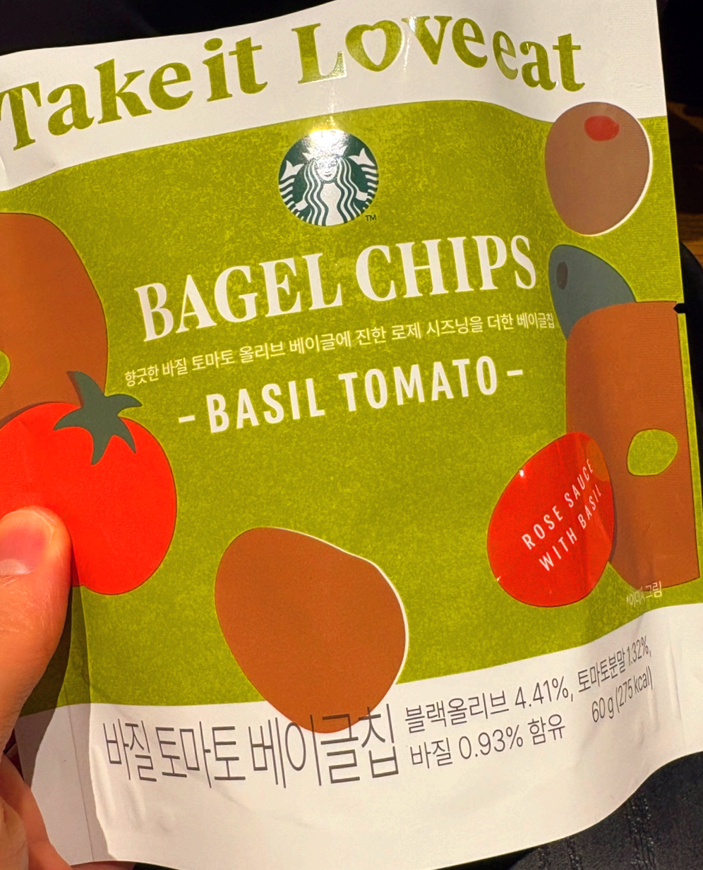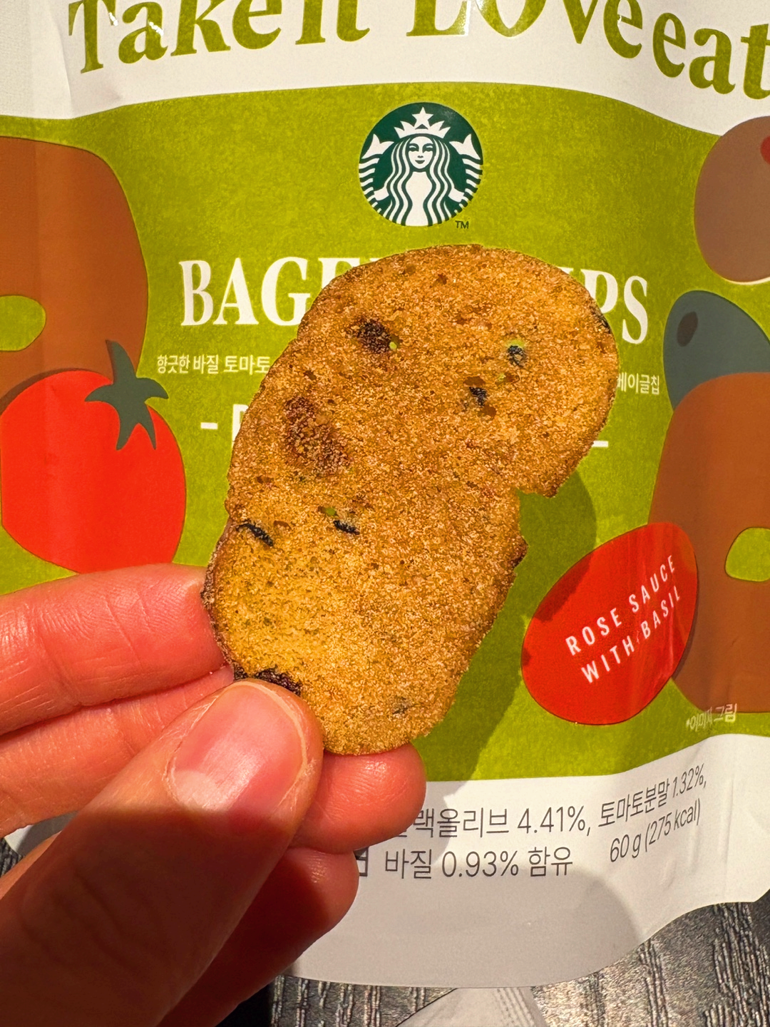스타벅스 신상 스낵 바질토마토베이글칩 먹어봤어요.
