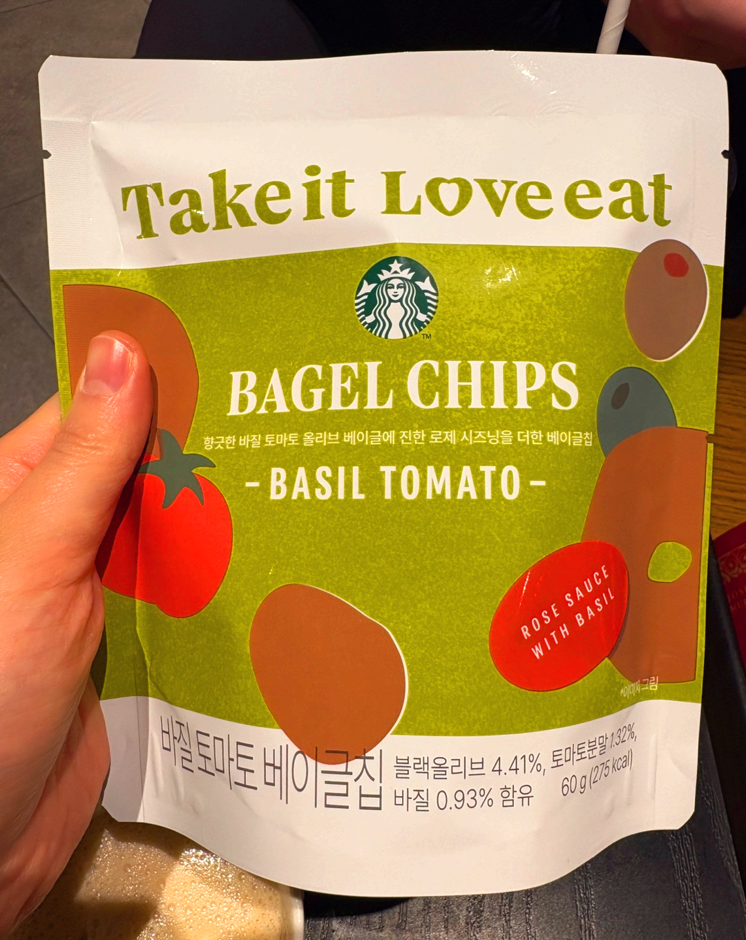 스타벅스 베이글칩이 가장 맛이 좋았어요.
