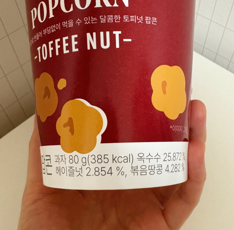 달콤 고소한 토피넛 팝콘이라고 되어 있습니다.