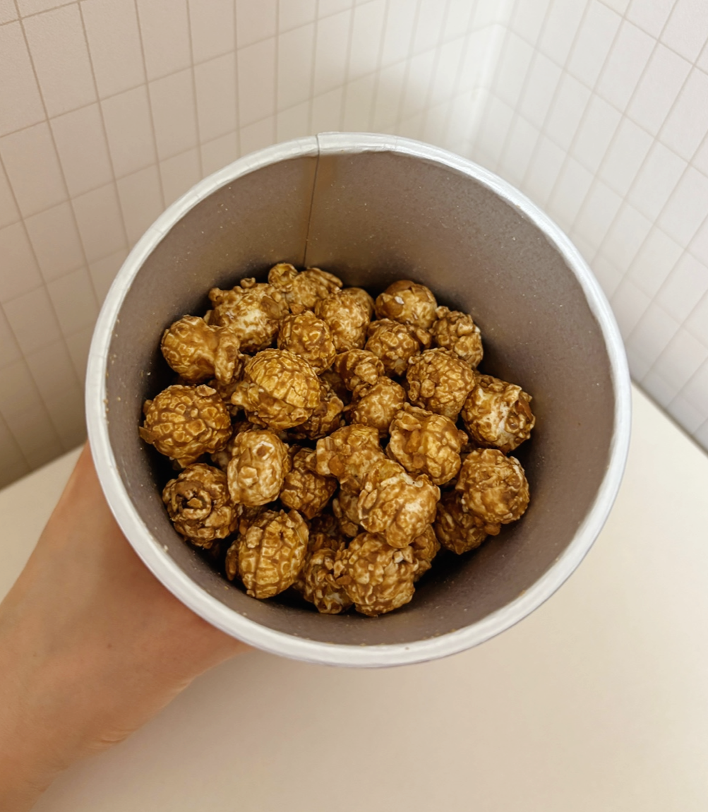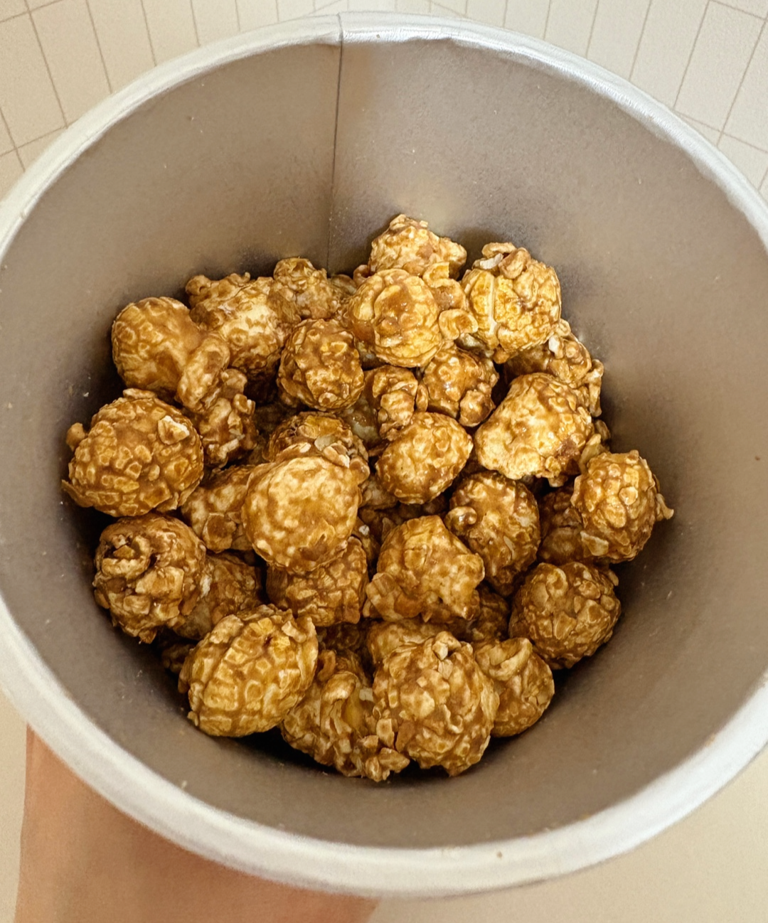 특히 카라멜 팝콘 특유의 끈적한 느낌과