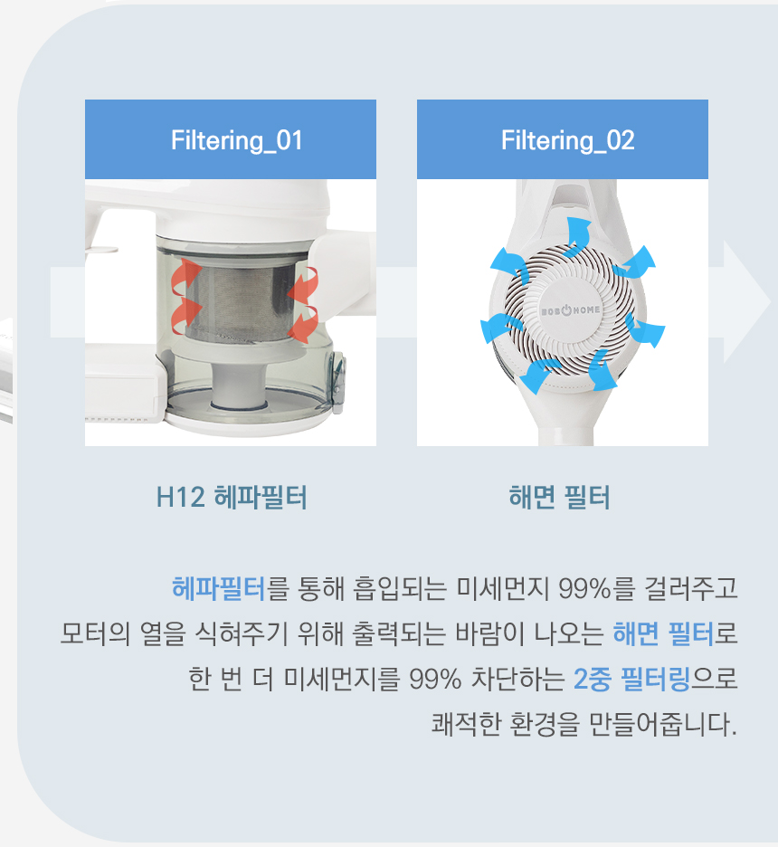 저소음 고흡입력으로 흡입력이 정~말 좋은데요,