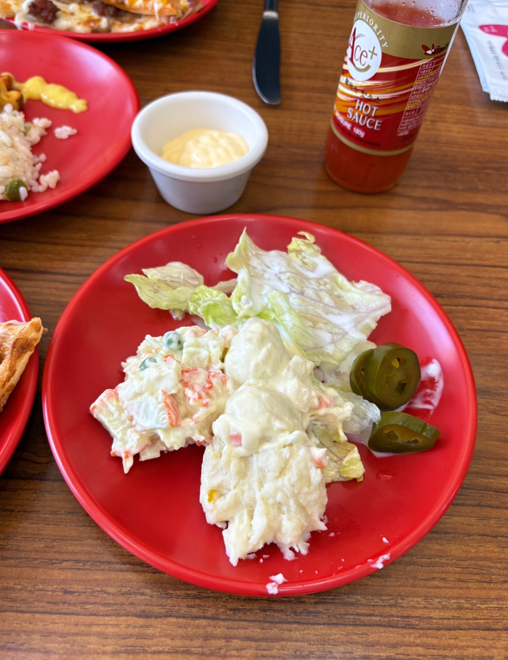 일단 피자를 본격적으로 먹기 전 샐러드부터 담아왔어요.