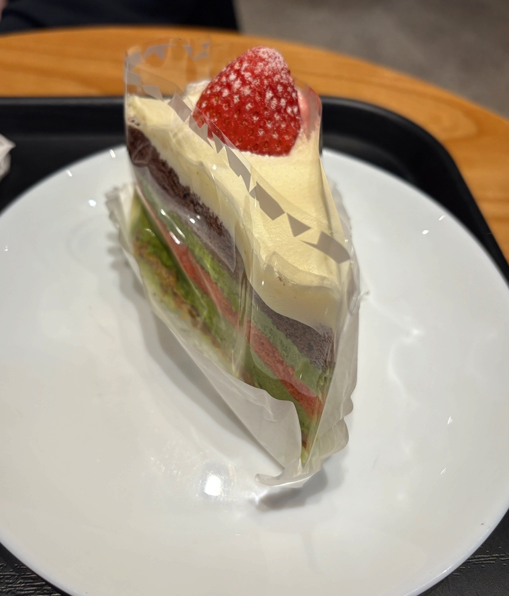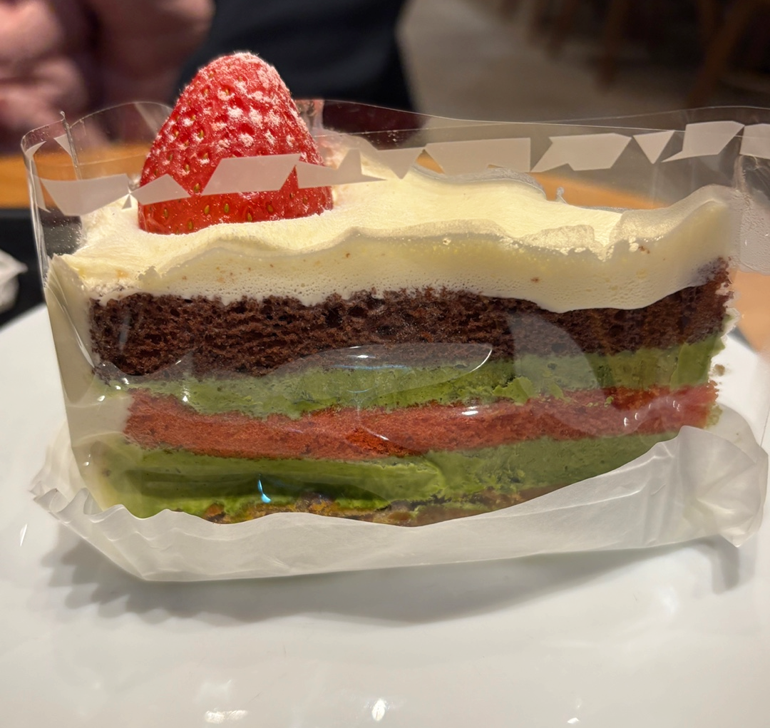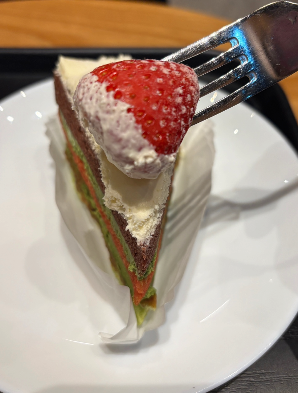 피스타치오 딸기 생크림 케이크를 먹어봤어요.