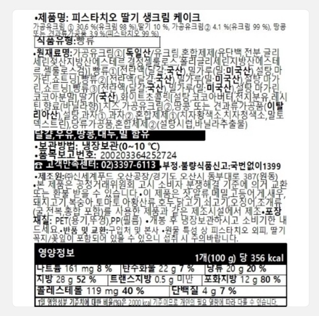 피스타치오 생크림 케이크 1개 가격 7,300원