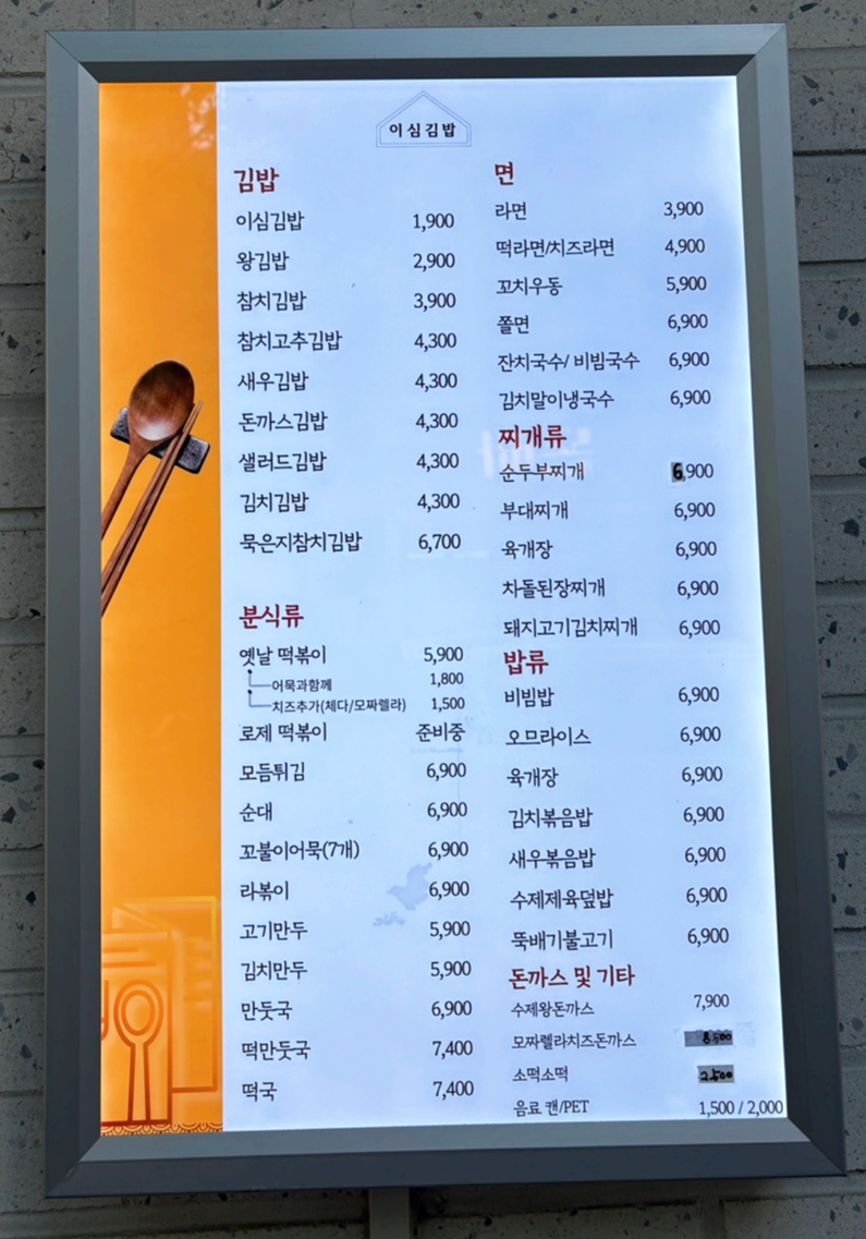 이심김밥집은 키오스크는 따로 없고