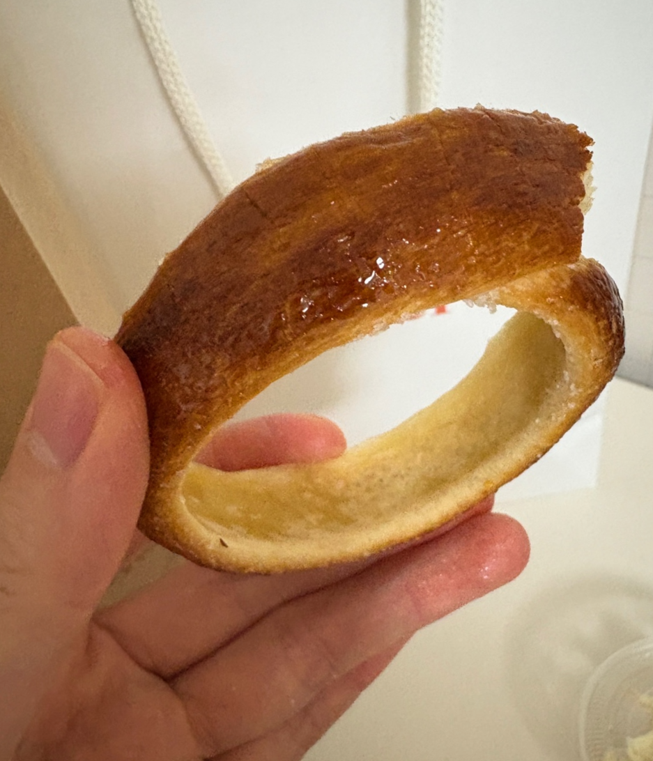 식감은 겉은 약간 바삭하고 빵속은 쫀득하면서