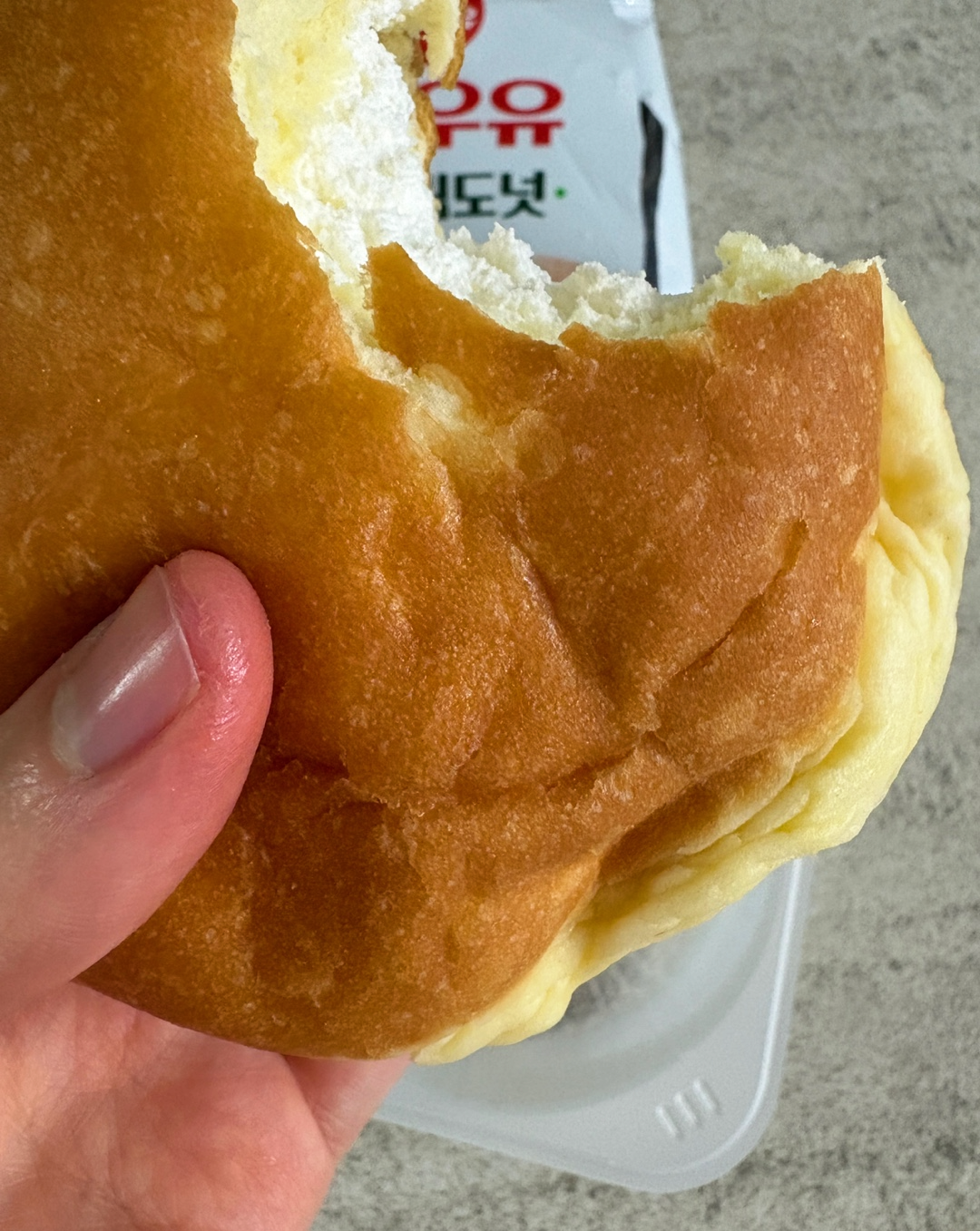 겉은 도넛의 식감이고 도넛속에는 우유 풍미 가득한