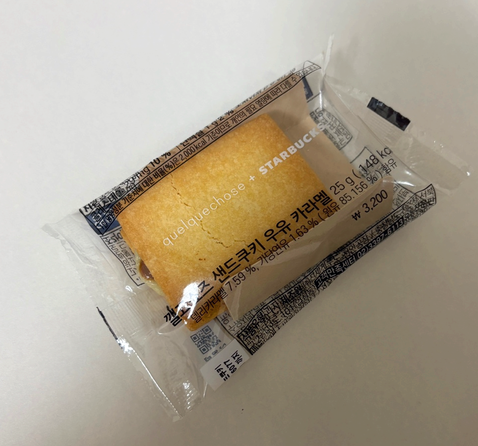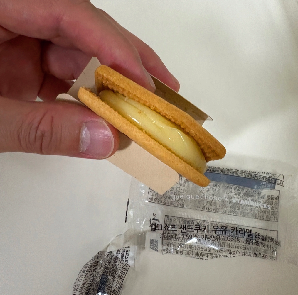 스타벅스 깰끄쇼즈 샌드쿠키 우유카라멜 맛입니다.