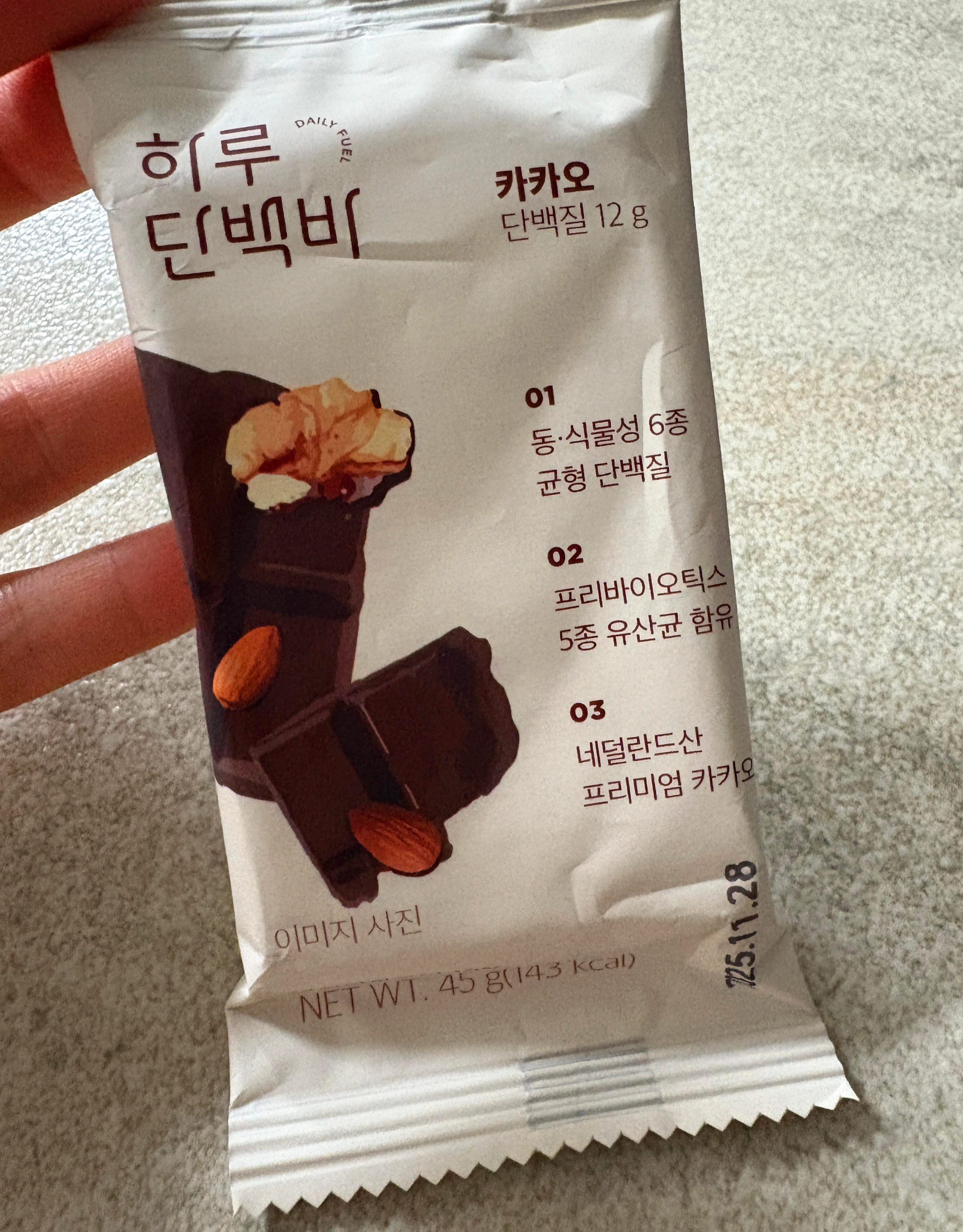 올리브영가서 하루단백바 카카오맛 하나 먹어주면