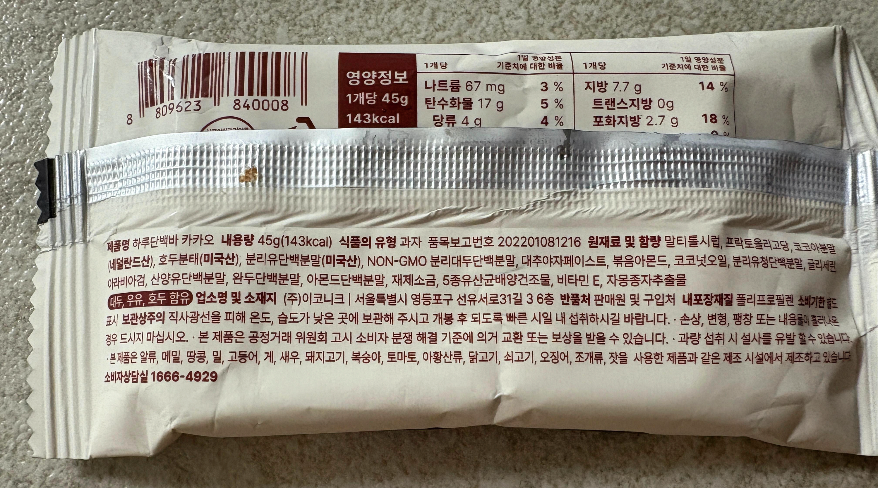밍밍하니 맛도 없는데 프로틴방앗간 하루단백바는