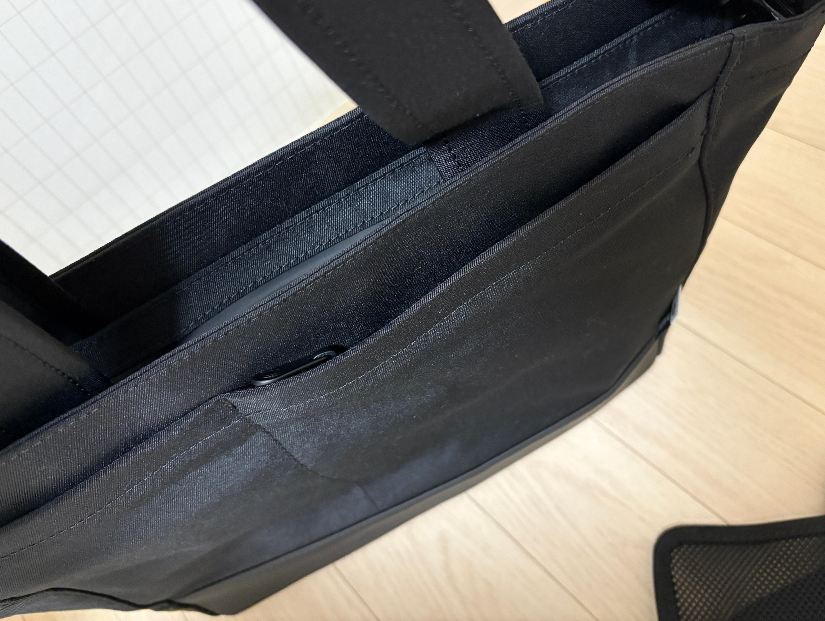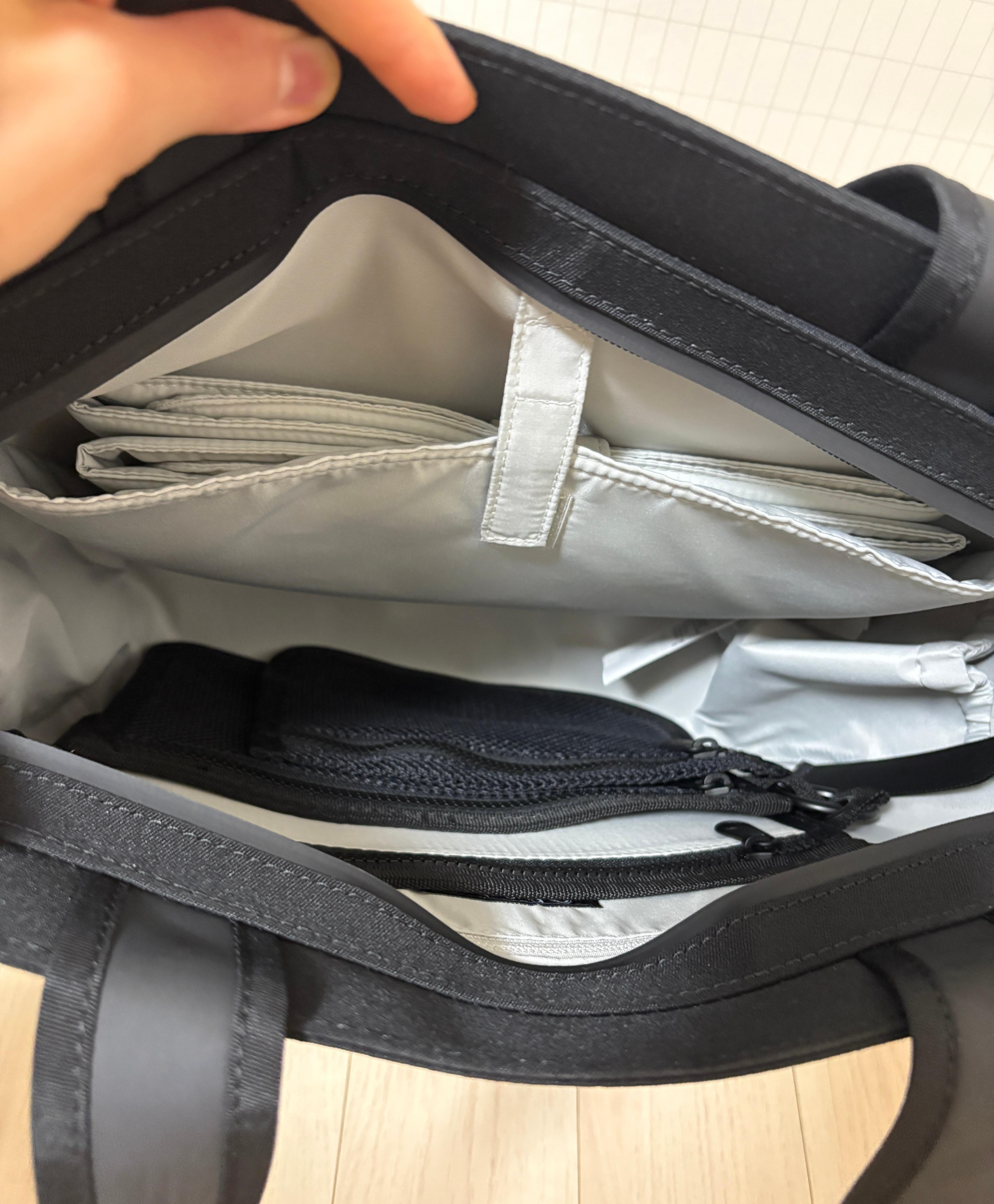 체인징백의 내부 포켓과 텀블러 넣는 공간이에요.