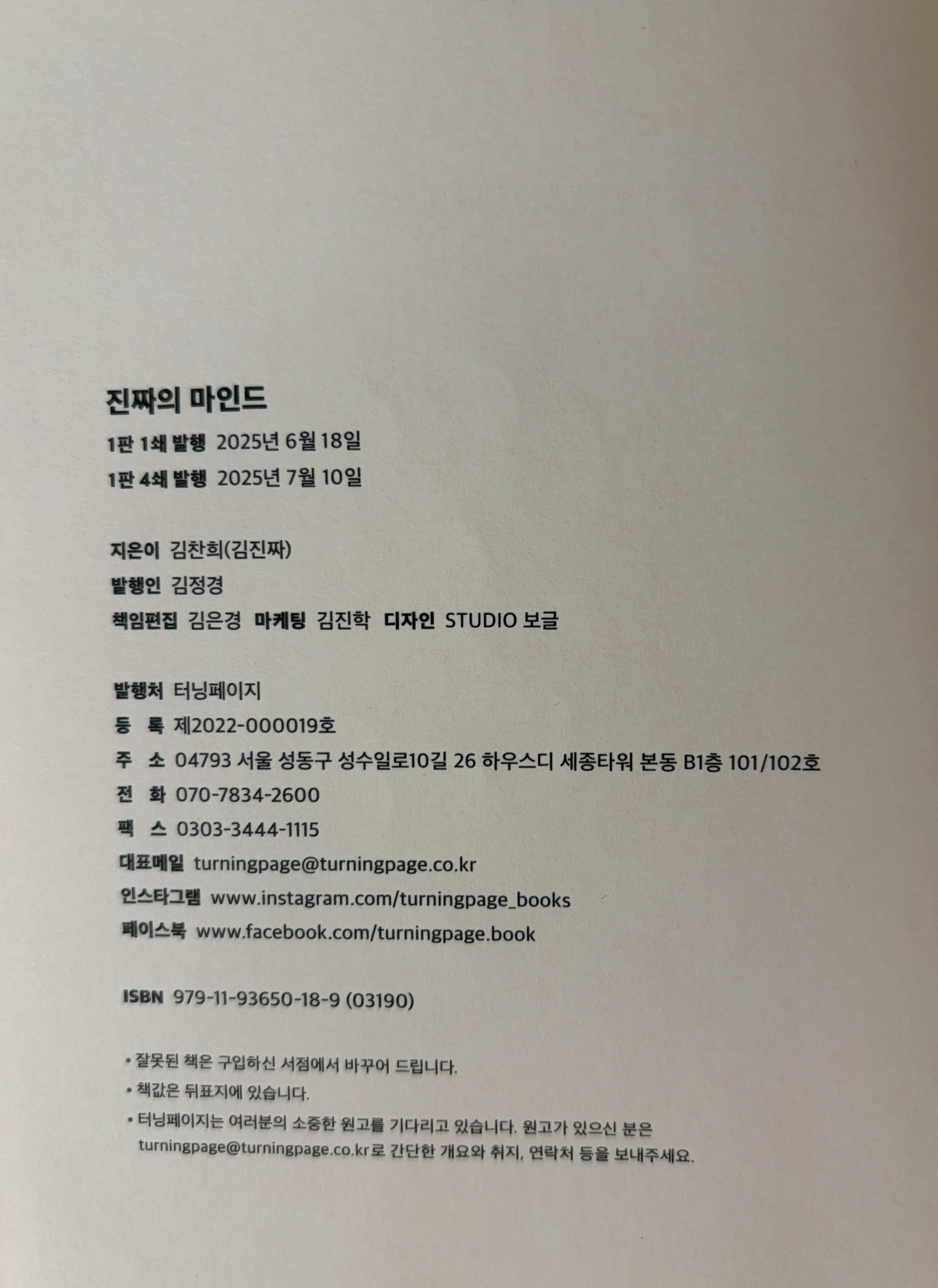 김진짜 김찬희 진짜의 마인드 책 리뷰