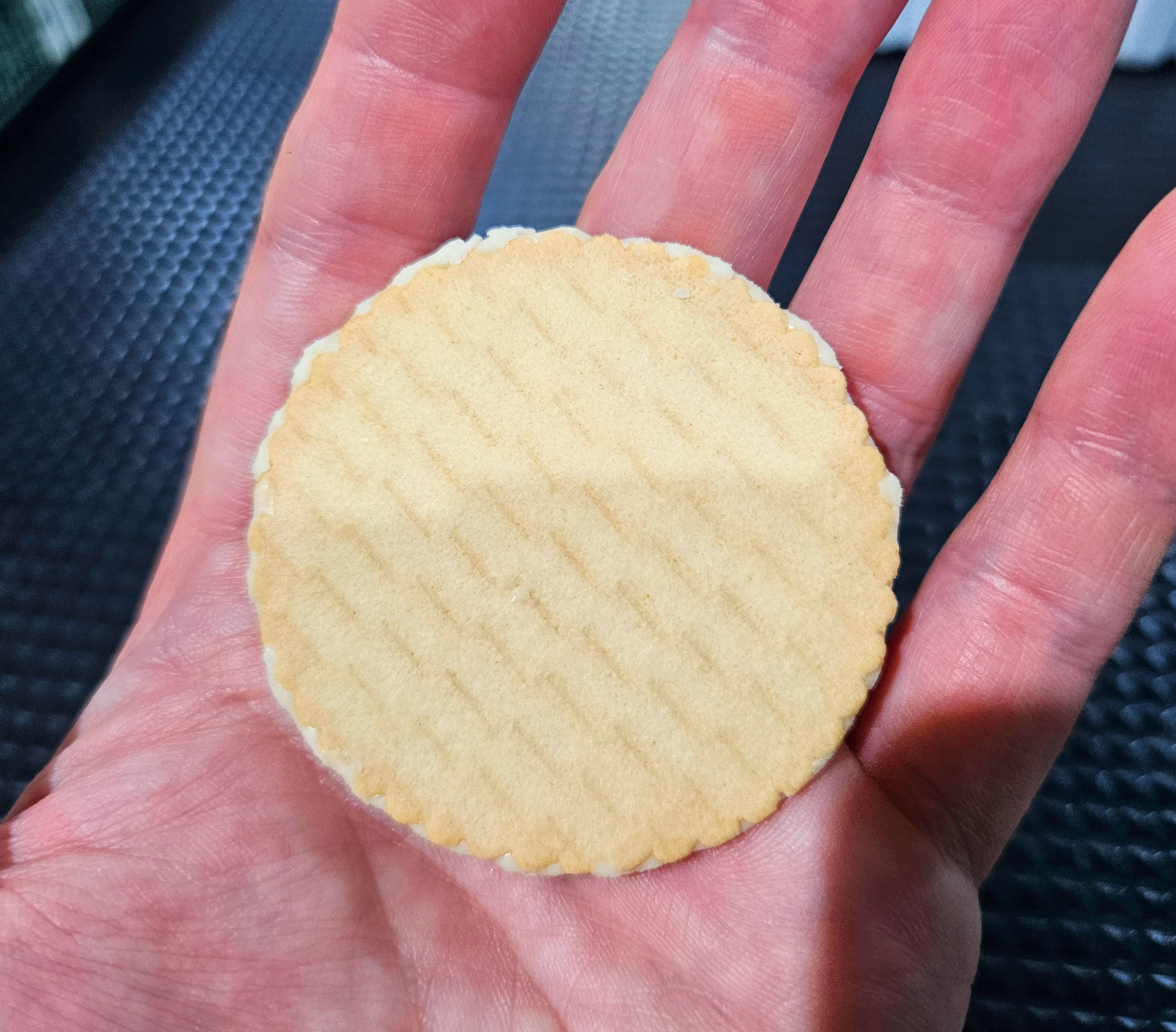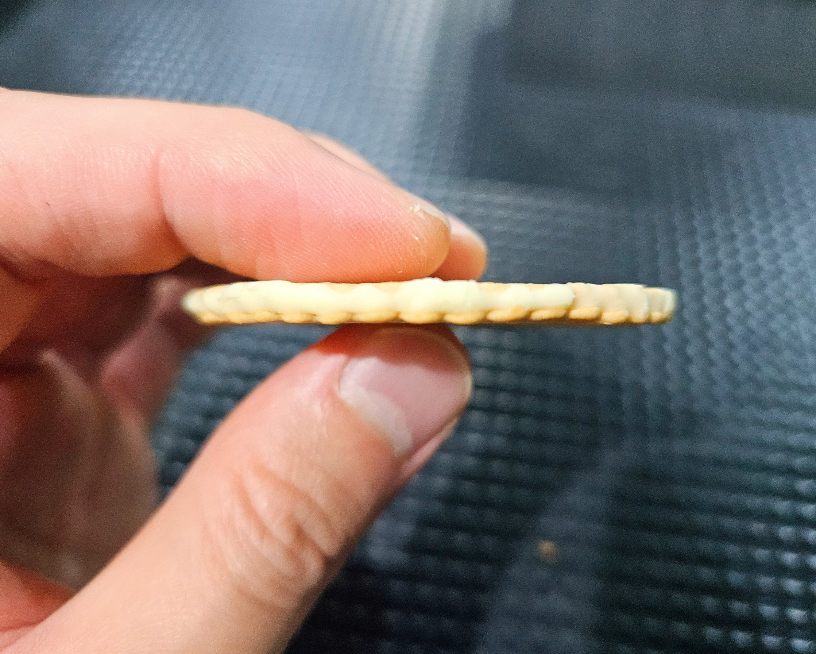 일반적인 고소한 버터향이 나는 비스킷이 아니라 짭짤하고 고소한 감자 비스킷 사이에 달콤한 우유크림이 들어 있어서 단짠단짠 한 맛으로 입에 넣자마자 상당히 맛있게 느껴졌습니다. 중독성이 강한 맛이랄까요. 기대이상으로 참 맛이 좋더라고요. 우유크림은 우유맛도 나지만 약간 치즈의 향과 맛이 느껴지던데 크림치즈가 함유되어 있었습니다.